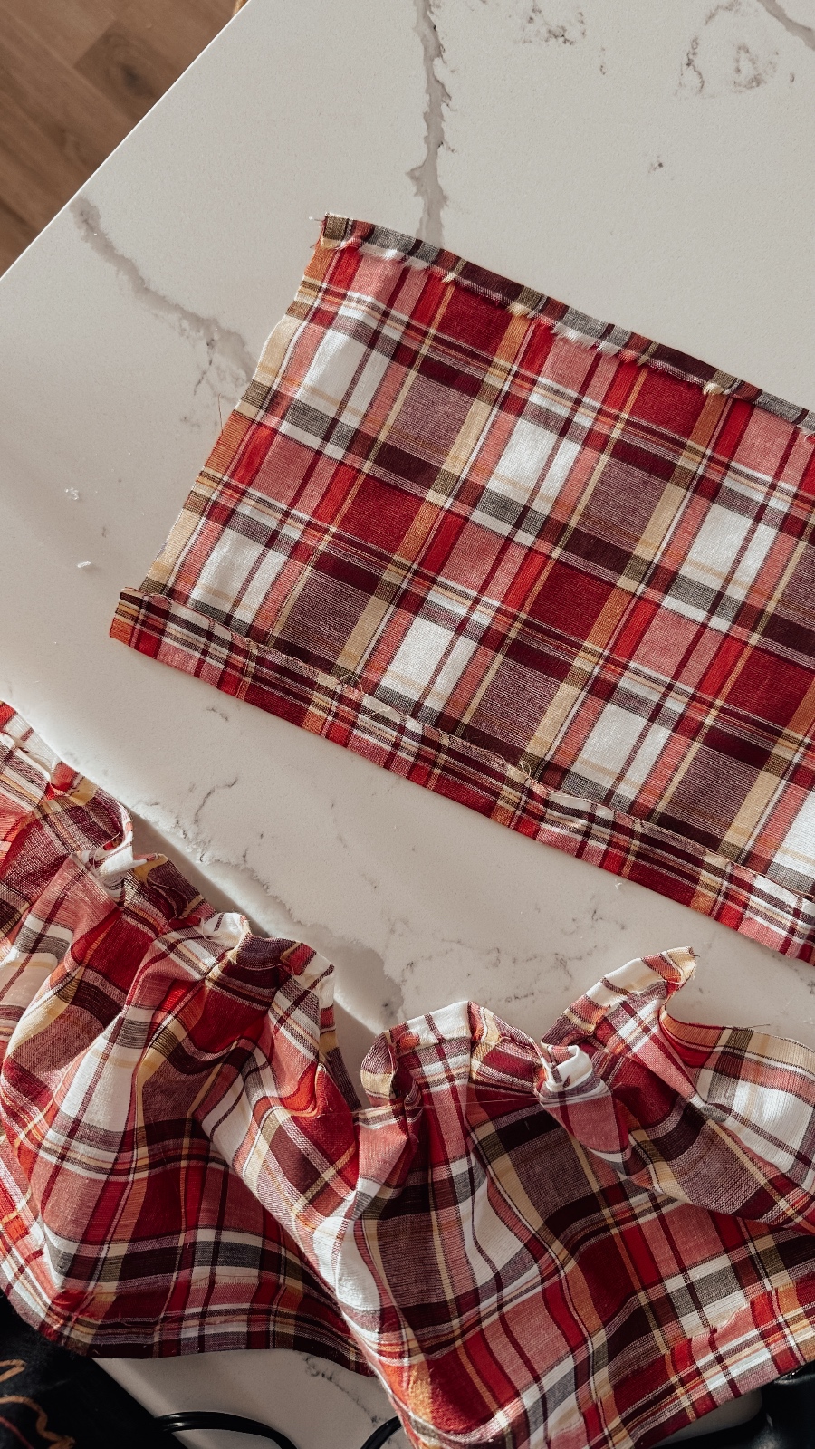 This particular fabric is the Madras Plaid Fabric (style 15991) and it’s a really pretty, almost pink toned fabric. I thought it worked really nicely in here by adding some soft colour.